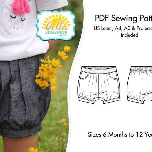 Tess Tulip Shorts Pdf Sewing Pattern Baby Shorts Pattern Etsy
